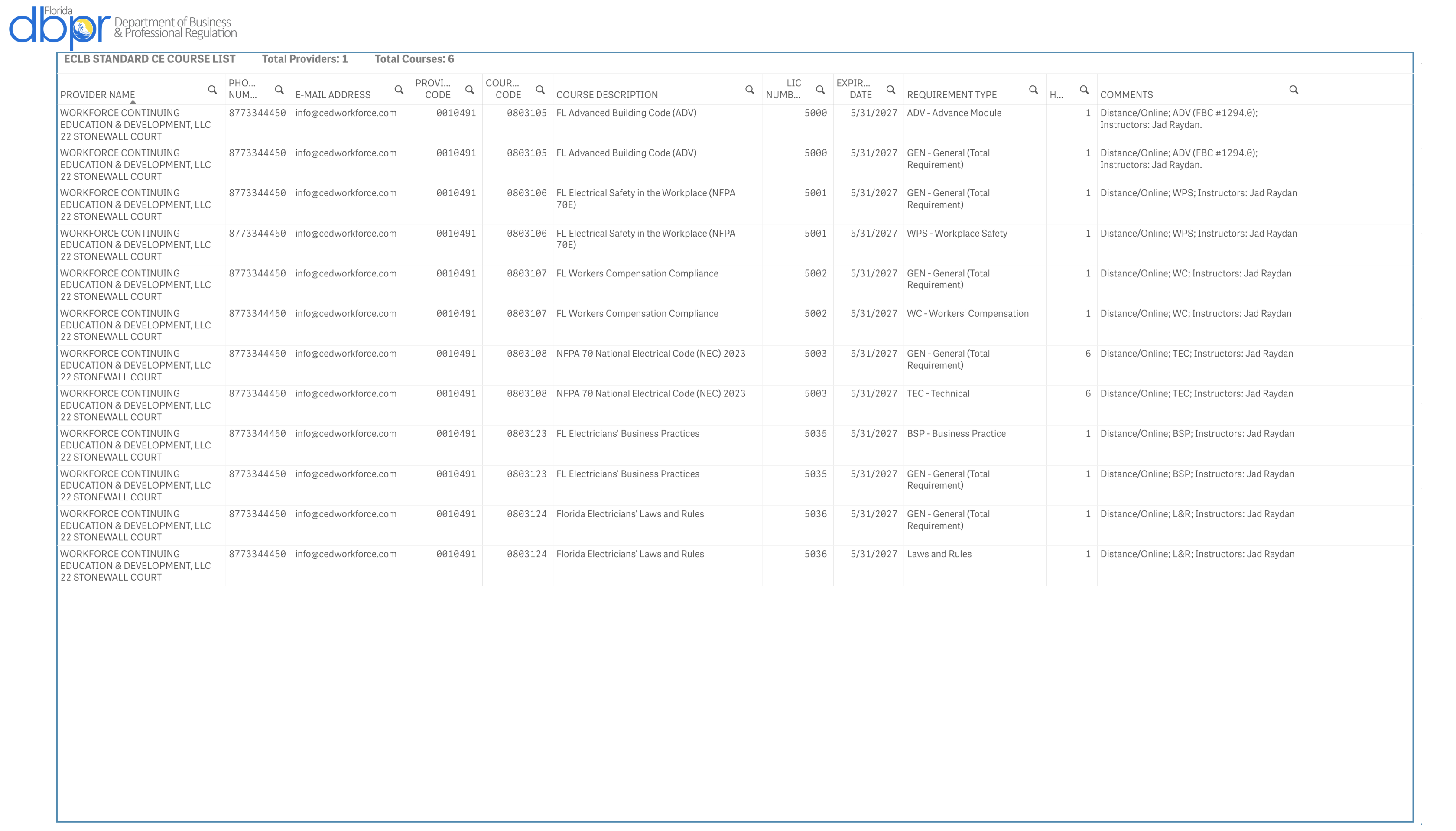 CEDworkforce.com is approved by the State of Florida Department of Business and Professional Regulation to offer continuing education courses to all license types listed above.